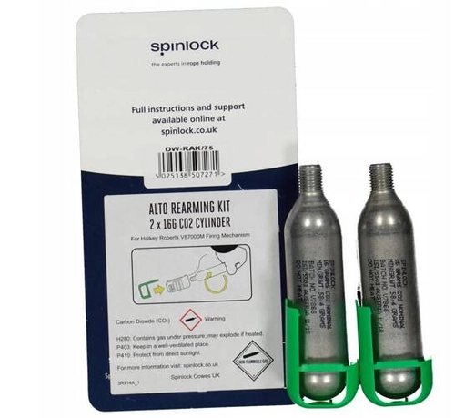 - Zestaw wymienny do kamizelki asekuracyjnej Spinlock ALTO 75N. W zestawie są 2 naboje 16g wraz z dwiema zawleczkami