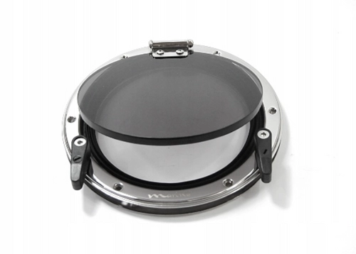 - Okno, bulaj wykonany z polerowanej stali nierdzewnej AISI316. Wyposażony w jeden zawias i dwa przekręcane zamknięcia.