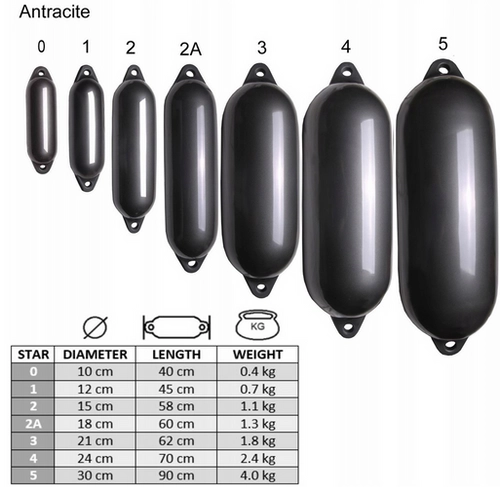 - Odbijacz burtowy firmy Majoni, model Starfender 2 o wymiarach 15x58 w kolorze antracytowym.