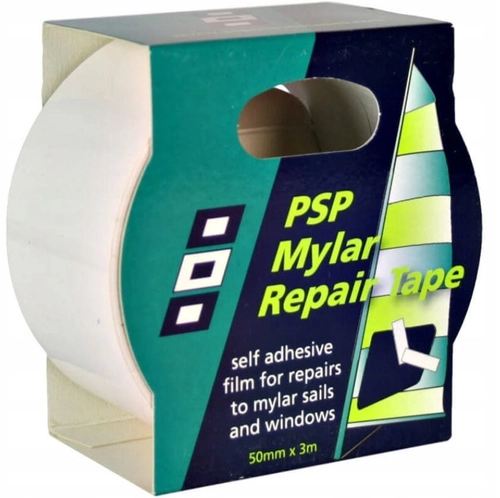 - Mocna samoprzylepna taśma mylarowa do wykonywania drobnych napraw żagli 50mmx3m.
